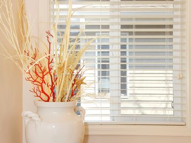 Vinyl blinds are an affordable, low-maintenance option that work well in almost any space. They’re moisture-resistant, easy to clean, and won’t warp or fade, making them ideal for high-humidity areas like kitchens and bathrooms. With their lightweight design and reliable light control, vinyl blinds offer a practical, budget-friendly solution for everyday living.